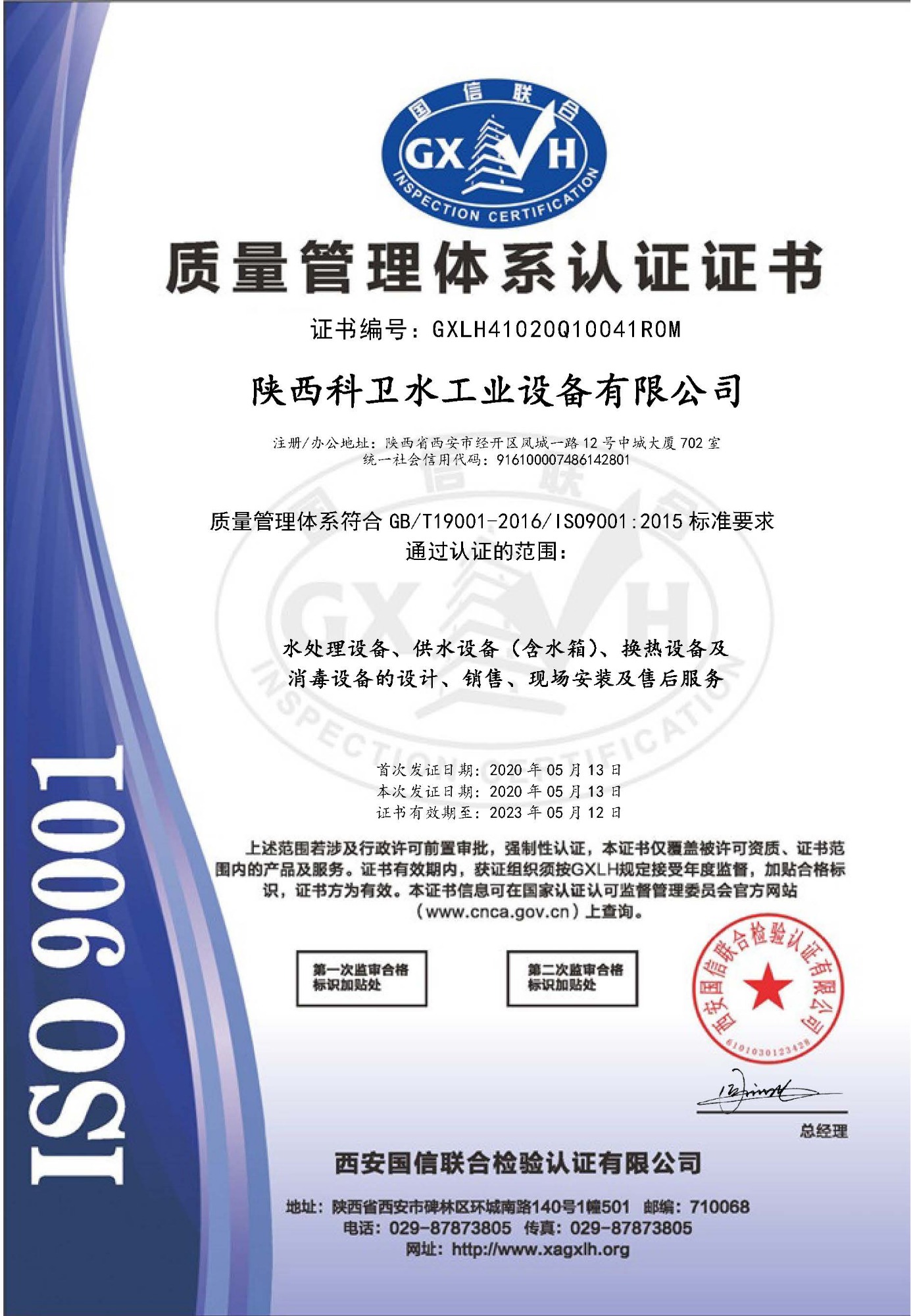 質(zhì)量管理體系認證證書