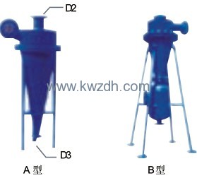 旋流除砂器是根據離心沉降和密度差的原理,當水流在一定的壓力下,從除砂器進口以切向進入設備后,生產強烈的旋轉運動,由于砂水密度不同,在離心力、向心浮力、流體曳力的作用下,因受力不同,從而使密度低的清水上升,由溢流口排出,密度大的砂由底部排沙口排出,密度大的砂由底部排砂由底部排砂口排出,從而達到除砂的目的。在一定范圍和條件下,除砂器進水壓力越大,除砂率越高,并可多臺并聯(lián)使用。