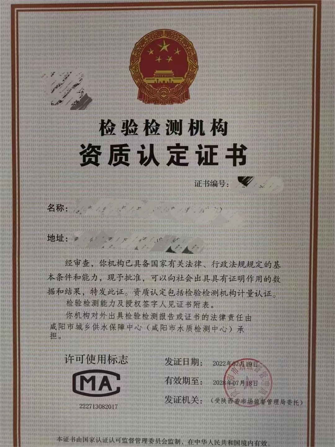 取得省級質監(jiān)局頒發(fā)的CMA證書,出具具有法律效益的報告。