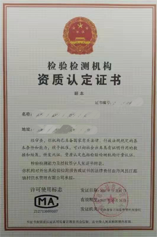 取得省級質監(jiān)局頒發(fā)的CMA證書,出具具有法律效益的報告。